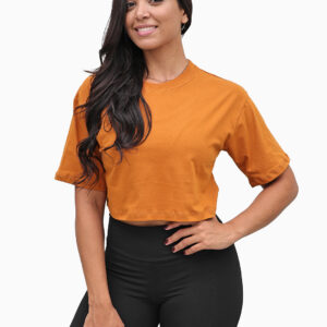 Ajuda com Camiseta Feminina Cropped Caramelo Algodão