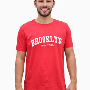 Ajuda com Camiseta Masculina Básica Vermelho Brooklyn Algodão